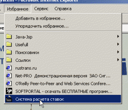 После добавления адреса сервера в "Избранное" вход в систему можно осуществлять через пункт меню "Избранное" Internet Explorer: